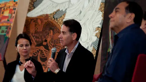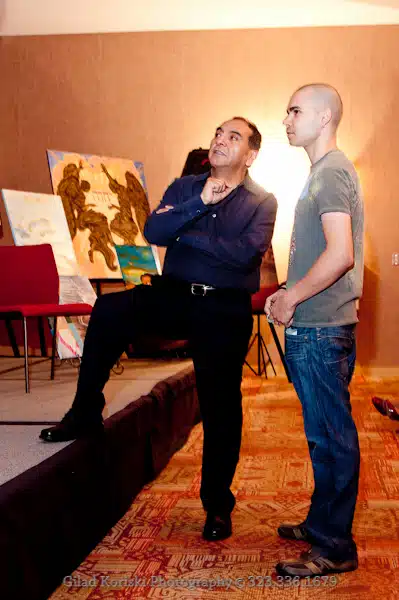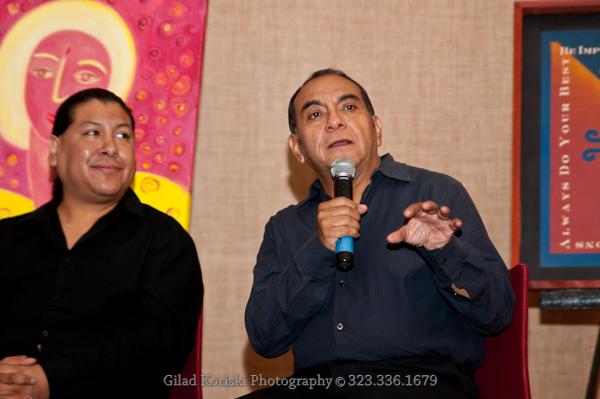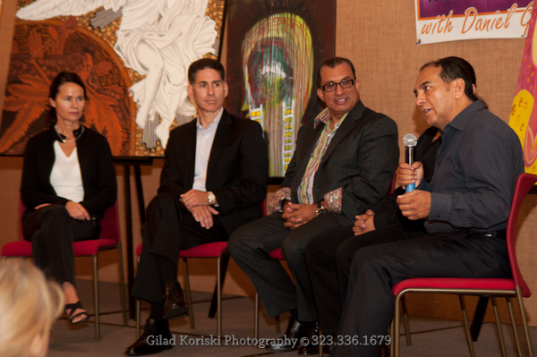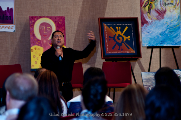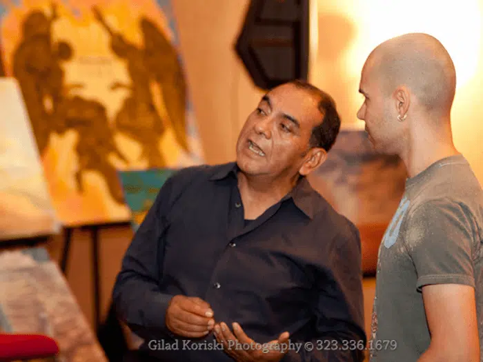 On October 8, 2011, La Mancha Fine Arts served as the curatorial anchor for Dialogs of the Heart — an intimate afternoon gathering conceived and organized by Omar Holguin's dear friend and collaborator Daniel Gutierrez, Mindful Leadership Expert and World Transformation Leader. Held at Hotel Maya in Long Beach, the event brought together two of the most compelling visionary voices of our time alongside an exhibition of international contemporary art selected expressly for the occasion.