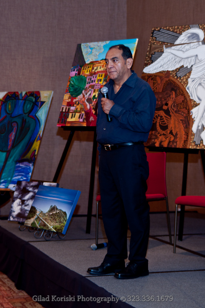 Eighteen works were presented under consignment, spanning various formats and scales, with the collection held at La Mancha Gallery in Los Angeles. The afternoon was intimate by design — seating was limited, and the atmosphere deliberate: art, conversation, and transformation occupying the same space, at the same moment, in service of something larger than any single discipline alone.